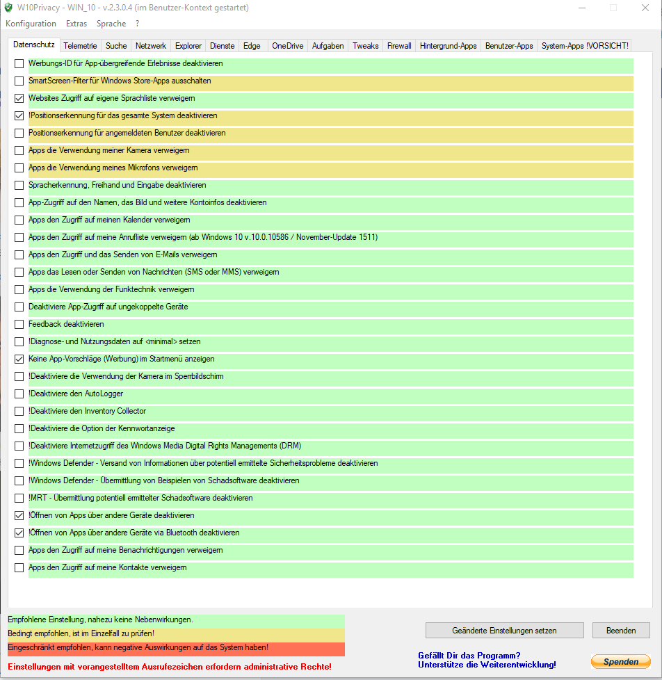 Mein Favorit ist dabei W10 Privacy. Normalerweise würde ich zwar zu einem der zahlreichen Open Source Programme greifen, W10 Privacy hat aber den großen Vorteil, dass es den Ausgangszustand wiederherstellen kann. Das ist dann praktisch, wenn einzelne Features von Windows nach den Anpassungen nicht mehr funktionieren.