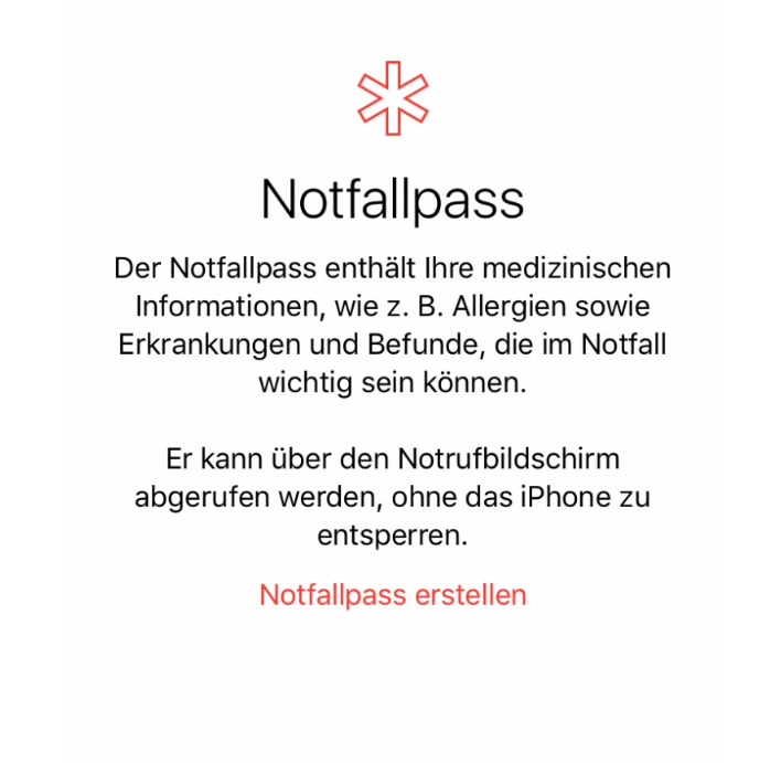- Klicken Sie in der Health-App auf den Notfallpass (Menüpunkt)